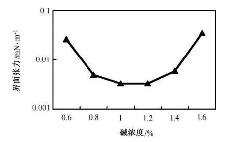 碱、表面活性剂浓度变化对三元复合体系界面张力的影响
