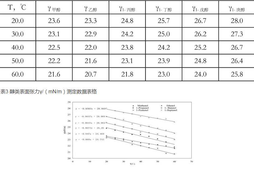 表3醇类表面张力γ/(mN/m)测定数据表格