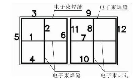 图1后舱管理装置下组件结构及电子束焊缝位置示意图
