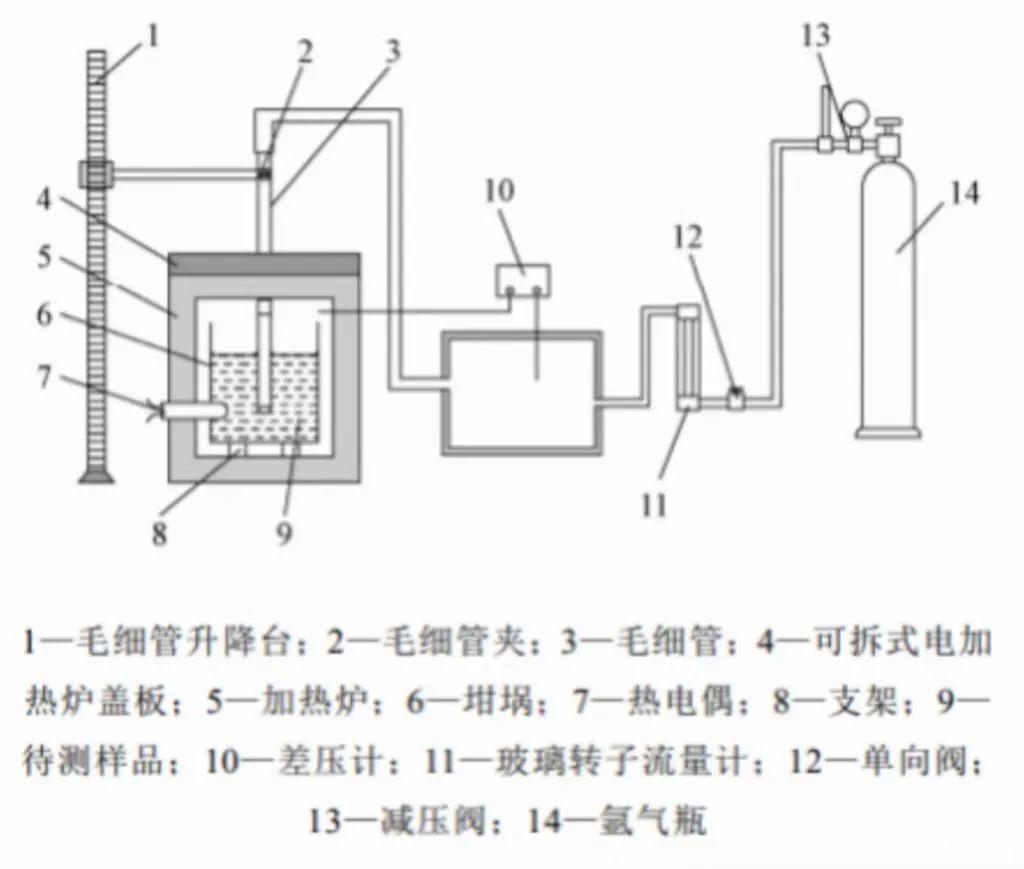 下图为本文设计的测量装置原理示意图与实物图,该装置主要由4个系统组成:气路系统、毛细管升降系统、加热恒温系统以及数据采集系统。