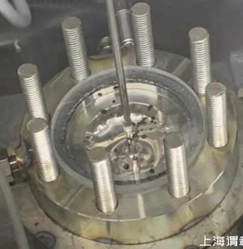 需要注意的是,由于液态锂高温下化学性质活泼,即便在手套箱氩气环境下,它也可能与盛装容器材料发生反应生成杂质,因此在实验中应及时去除漂浮在坩埚表面的杂质。图4为实验中在毛细管内通入氩气后液态锂的鼓泡图。